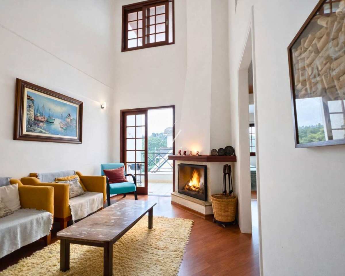 - Living com lareira e sacada
